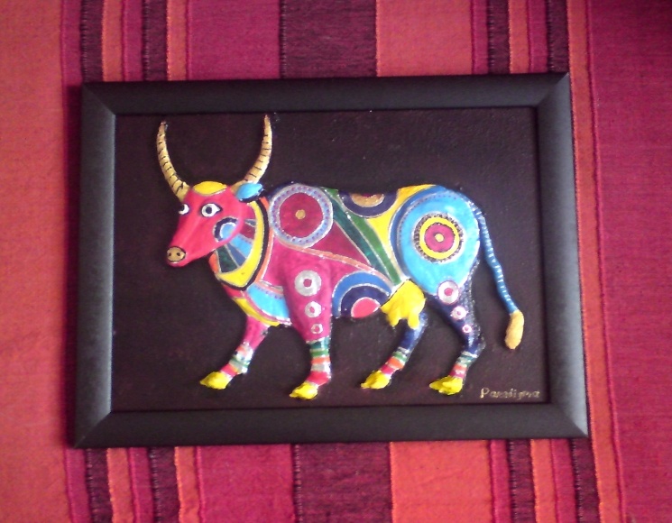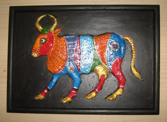 Однажды у своих знакомх я увидела статуэтку коровы, которая была расписана в очень сочных и ярких красках. Знакомые объяснили, что эта статуатка приносит счастье и , как бы это удивительно не было, она на самом беле приносит счастье в дом. На днях я решила тоже сделать себе корову счастья и я очень надеюсь, что и моя корова будет приносить в дом счастье.