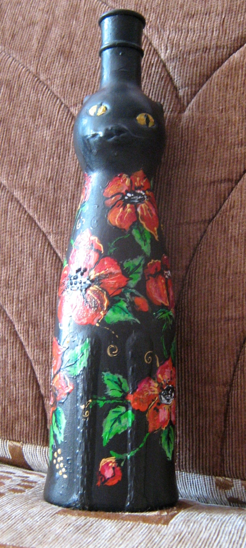 И расписала её. Это моя первая разрисованная бутылка. Её высота около 45 см, литраж даже и не представляю :biggrin: