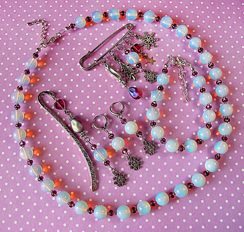 Ожерелье "СНЕЖНАЯ КОРОЛЕВА" из беломорита