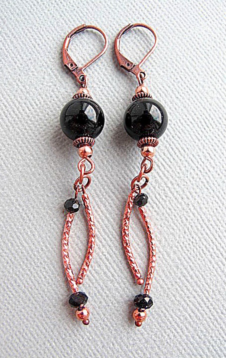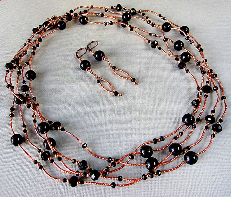 длинный сотуар и серьги из бусин обсидиана, чешского стекла и биконусов Swarovski Ответ на сообщение Re: Эксклюзивная дизайнерская бижутерия ручной работы, все делаю сама! пользователя Соня5