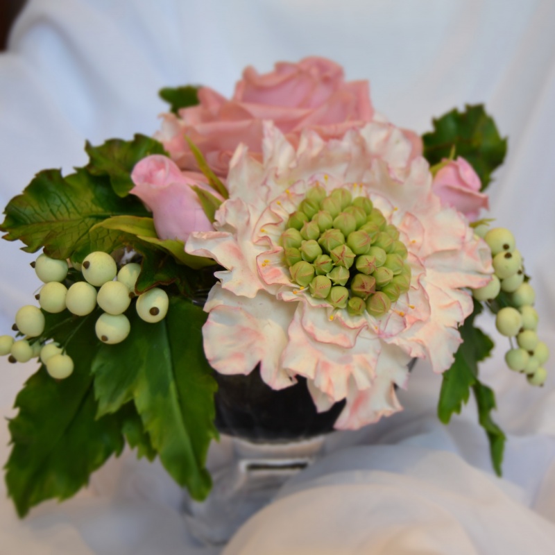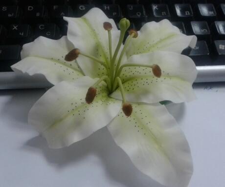 Я увлекаюсь изготовлением реалистичных цветов из тайской полимерной самозатвердевающей глины. Каждый цветочек вылеплен в ручную лепесток за лепестком, окрашен маслеными красками. После отвердевания изделие остается гибким, не хрупким. Чистить такие цветы легко, с помощью сухой кисти или фена.
