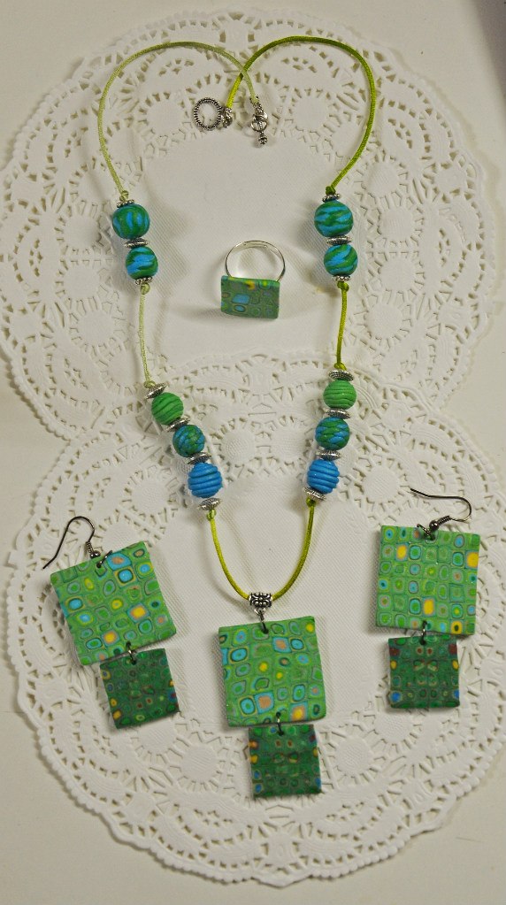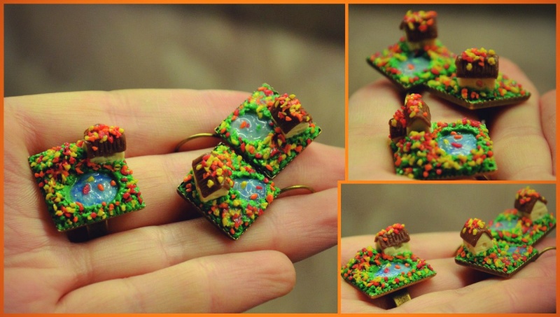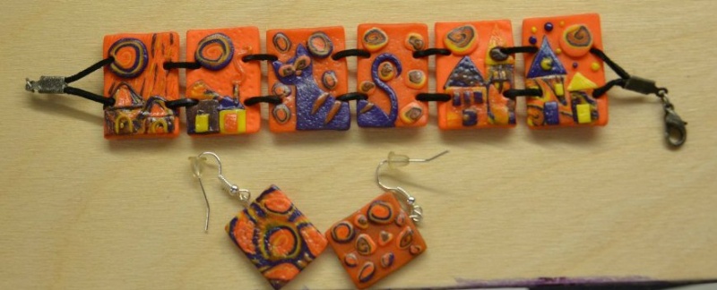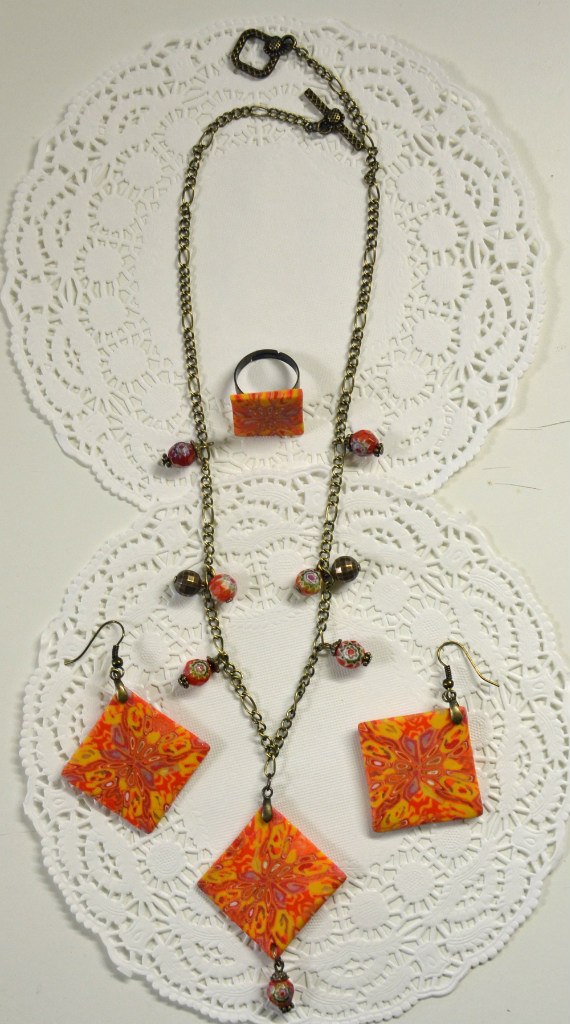 Браслет, серьги, кольцо (полимерная глина). Осенний двор.