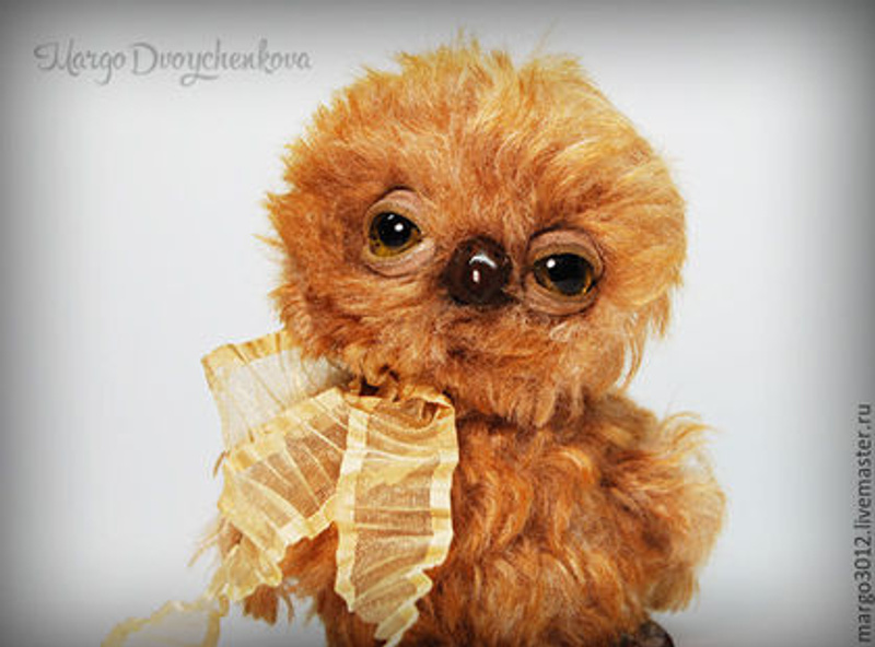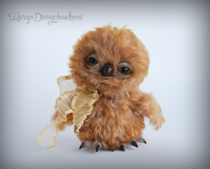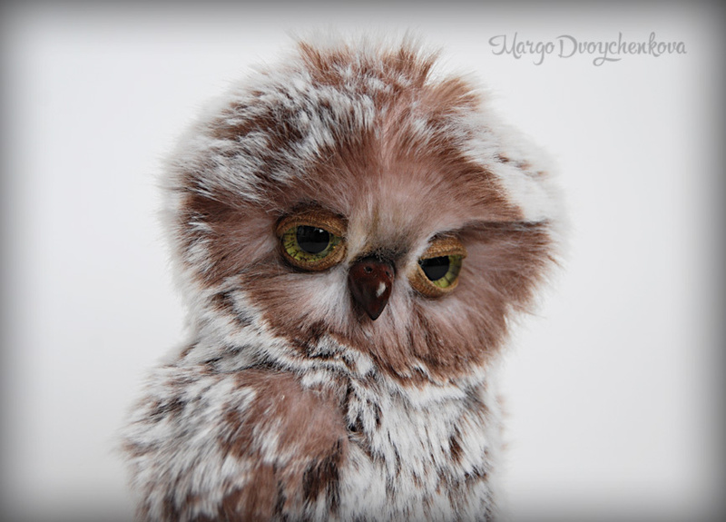 Совушка Соня выполнена из искусственного меха Schulte, миништофа, набивка синтепух, утяжелена минеральным гранулятом, головушка на двойном шплинте, глазки стекло (расписаны вручную), клюв и коготки ручной лепки, веки подвижные, тонировка маркерами, художественным маслом и сухой пастелью.