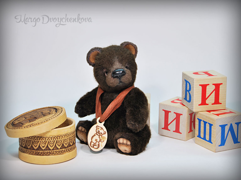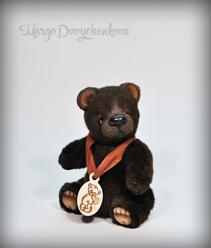 Выполнен из искусственного меха производство Германия, миништофа, набивка синтепух, утяжелён металлическим гранулятом, 6 шплинтов, глазки стекло, носик ручной лепки, тонировка художественным маслом и маркерами. Рост 12 см. Самостоятельно стоять не хочет (маленький ещё))), сидит с удовольствием!