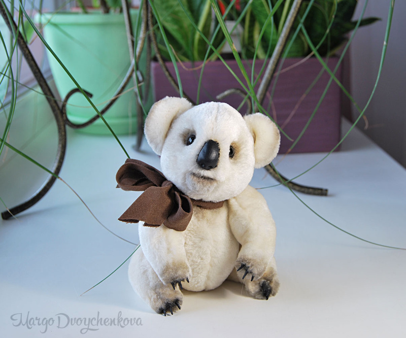 Выполнен из искусственного меха, миништофа, набивка синтепух, утяжелён металлическим гранулятом, глазки стекло, крепления на скелете и проволоке, затонирован текстильным маркером и сухой пастелью.