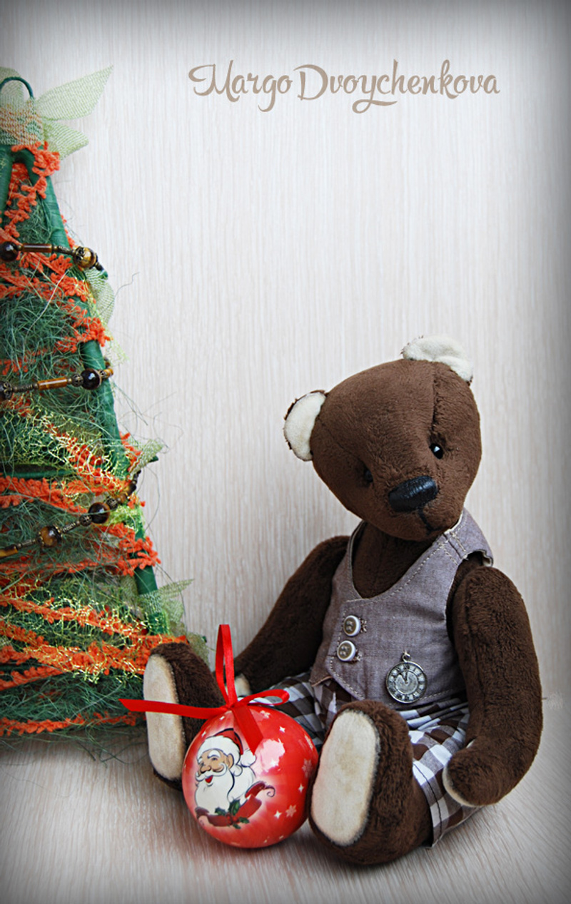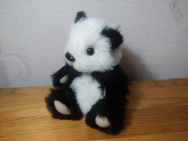 Выполнен из искусственного меха Schulte, набивка синтепух, утяжелён металлическим гранулятом, 6 шплинтов, глазки стекло, носик из шерсти для валяния, тонировка сухой пастелью и маркерами.