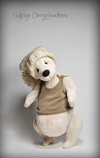 Выполнен полностью вручную из немецкого мохера, миништофа, набивка синтепух, утяжелен металлическим гранулятом, глазки стекло ручной росписи, головушка на двойном шплинте, веки подвижные. Затонирован текстильным маркером и пастелью.