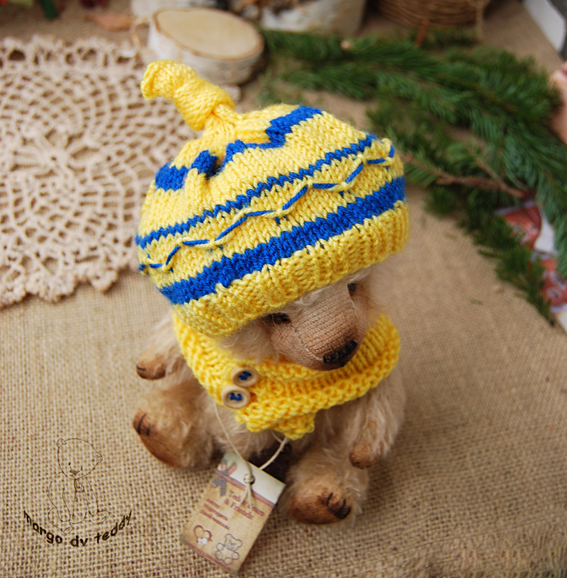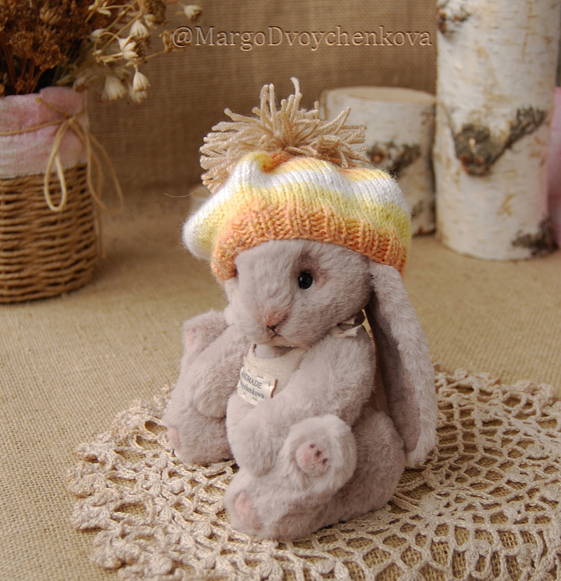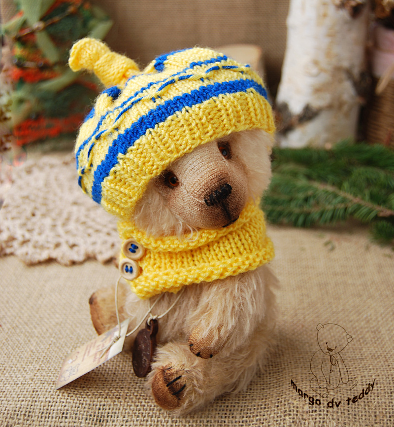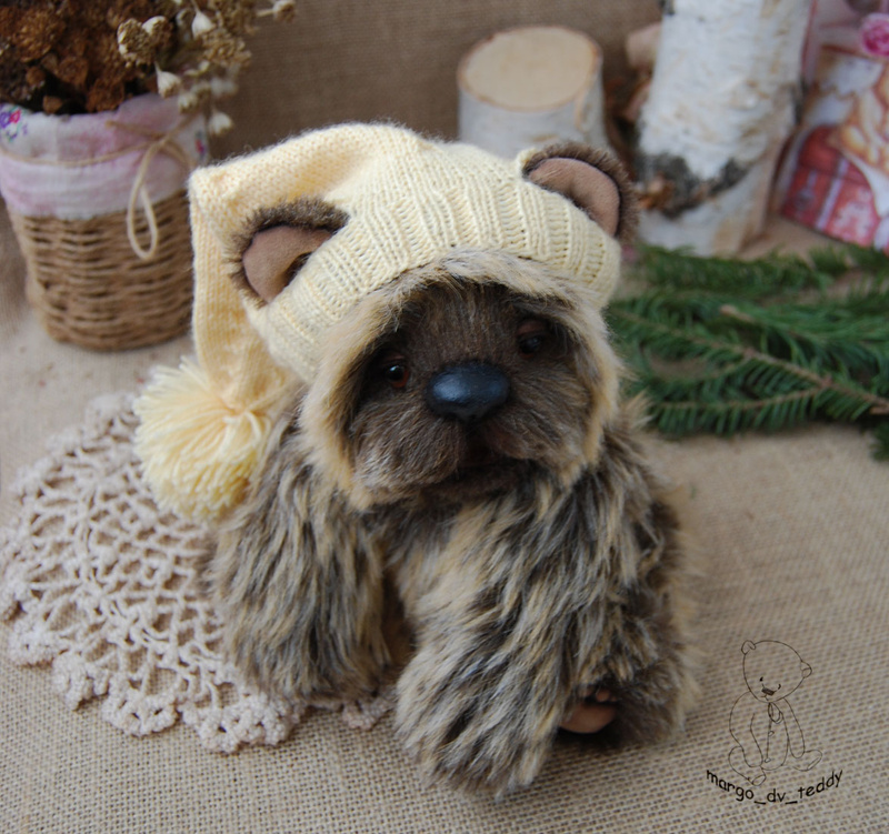 Технические подробности: выполнен полностью вручную по авторской выкройке из немецкого мохера, набивка синтепух, утяжелён металлическим гранулятом, крепления все подвижные на 6 шплинтах, глазки немецкие стеклянные, тонировка художественными маркерами. Рост около 11 см. Умеет стоять, сидеть, лежать и может принимать разные смешные позы. Имеет документ удостоверяющий личность и шапочку))