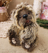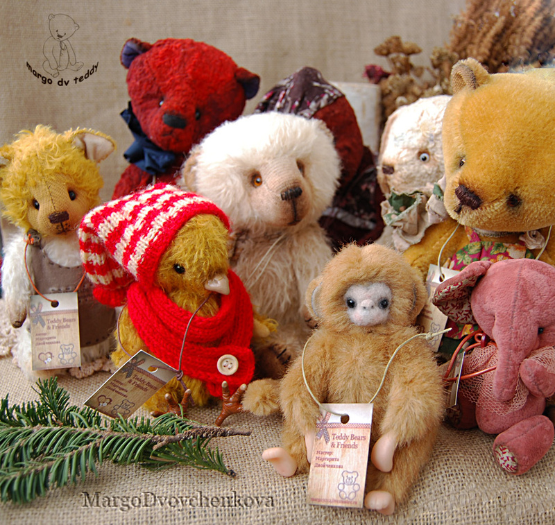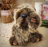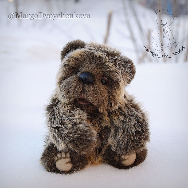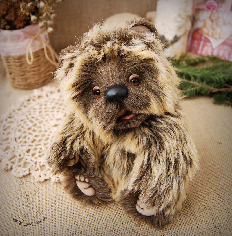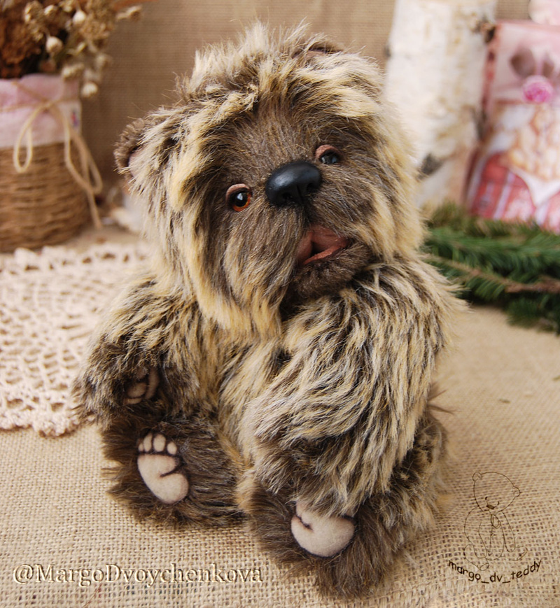 Технические подробности: выполнена из немецкой "кудрявой" вискозы двух цветов, набита опилочками и синтепухом, утяжелена минеральным гранулятом, крепления все подвижные на 6 шплинтах, глазки немецкие стеклянные, тонировка натуральным кофе и художественными маркерами.