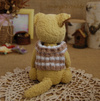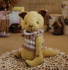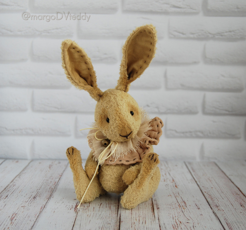 Технические подробности: выполнен полностью вручную по авторской выкройке из немецкой вискозы лимонного цвета, набит опилочками, утяжелён минеральным гранулятом, глазки стеклянные, крепления лапок и головы подвижные на 6 шплинтах, тонировка художественными маркерами. Рост около 16 см. без ушей, 26 см. с ушками) Умеет стоять самостоятельно, сидит с удовольствием! Имеет индивидуальный документ - Паспорт игрушки.