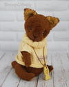 Технические подробности: мишка выполнен полностью вручную по авторской выкройке из двух видом немецкого мохера, набивка синтепух, утяжелён минеральным и металлическим гранулятом, глазки стеклянные, крепления все подвижные (как и положено настоящему Тедди!), тонировка художественным маслом.