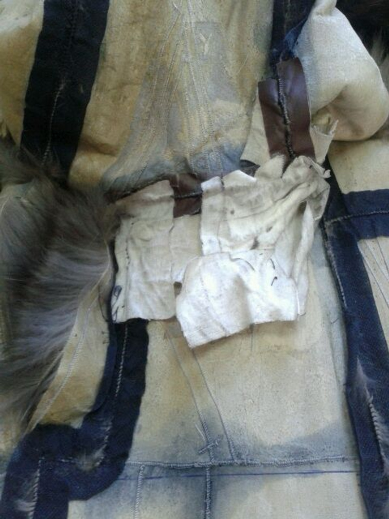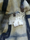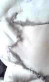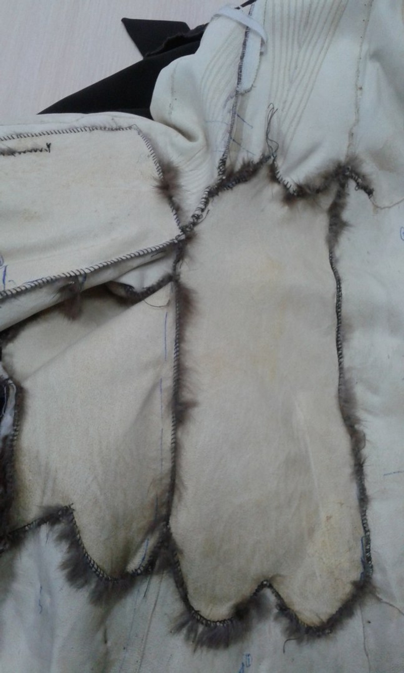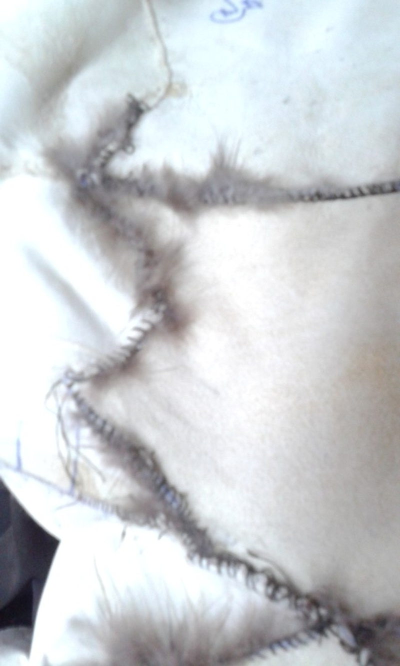 Хочу остановить людей в попытках исправить что-то самим.Про пластырь и суперклей молчу,но зачем -то некоторые люди гладят свои шубы Нет,нет,не ладонью,перебирая шелковистый мех,а просто-утюгом ,видимо еще поддав пару,или сушат влажные шубы.Не признаются,осознав свою ошибку.Но -вот результат.Свареная и разрушенная напрочь кожевая ткань.Шуба была "в роспуск",но,делать нечего,пришлось делать кокетку из подобранного меха,на фото видно стыки,но вживую все практически сливается.