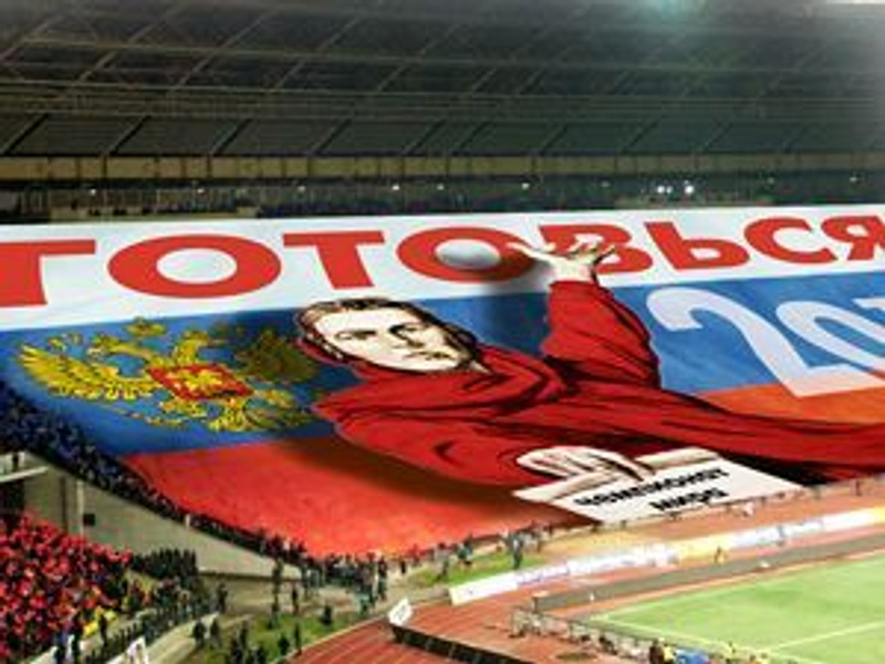 "Внешне все будет выглядеть вполне политкорректно: баннер будет призывать болельщиков готовиться к чемпионатам мира по футболу 2018 и 2022 года (Россия ведет борьбу за право стать хозяйкой этих турниров). Но призыв этот будет вложен в уста... героини знаменитого плаката времен Великой Отечественной войны под названием «Родина-мать зовет!». Такой баннер не только способен возбудить патриотические чувства у российских игроков и болельщиков, но и заставить содрогнуться немцев, которым историческая память подскажет печальные аналогии. Гигантское полотно размером 110 на 70 метров шили на швейной фабрике в подмосковном городе Верея (там, кстати, родился и «британский» Мишка)."
