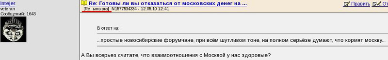 Ответ на сообщение Re: Готовы ли вы отказаться от московских денег на ... пользователя Intejer