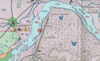 Синяя звездочка, где раньше стоял дебаркадер, а синии стрелочки, как к ним подходил теплоход