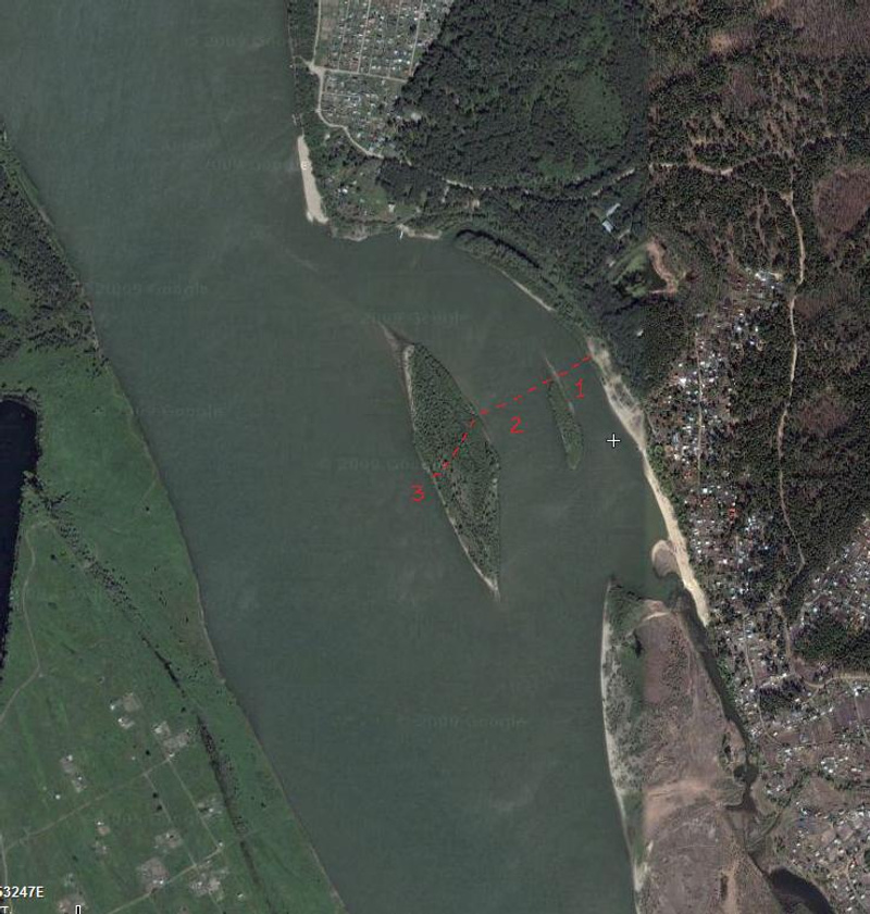 А вот слева в углу это что? Там огромнейший вроде как полуостров с резким сужением русла Оби.Я так понимаю, что это мыс (или как его назвать-то), который указан в этом прикрепленном файле... А выемка указана стрелкой... Просто сейчас выемка совсем сузилась... Вот снимок:
