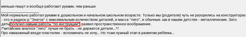 4. Как шитье фартука (в час по чайной ложке, т.е. за два месяца) поможет мне сварганить "шикарное" новогоднее платье - совершенно из других материалов (требующих другой обработки), со сложным фасоном и пр.? Если бы с нами шитьем (как и кулинарией) занимались больше (чисто теоретически) - конечно, навыков было бы больше, можно было бы творчески их использовать... Льняные салфетки я в своем детстве у бабушки подрубала и это было еще до средних классов, но с тех пор, насколько могу судить, кухонные полотенца всегда продаются готовыми. А ставить грамотно заплаты - это отдельное искусство. Например, как моя матушка штопает круглые дырки на трикотаже, я больше нигде не видела. Уверена, что это не какое-то исчезающе редкое искусство, но факт, тем не менее. И этому мастерству в школе не учат.