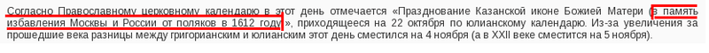 Ваш скриншот не опровергает ни одного из моих утверждений...Вы хотите свести смысл праздника к его религиозности, умалчивая про то, что религиозный праздник возведён в статус государственного в честь освобождения от польской оккупации.