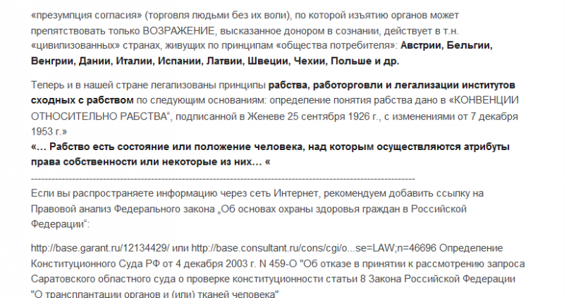 Аргументы такие-же как и в случае с желтой прессой - нет ссылок на конкретные фамилии, адреса, законы, подзаконные акты, судебную практику и так далее. есть только некая писанина, якобы взятая "из некоего интернета". Я не говорю, что это ложь. Но это не форма подачи серьезной и достоверной информации, а наоборот.