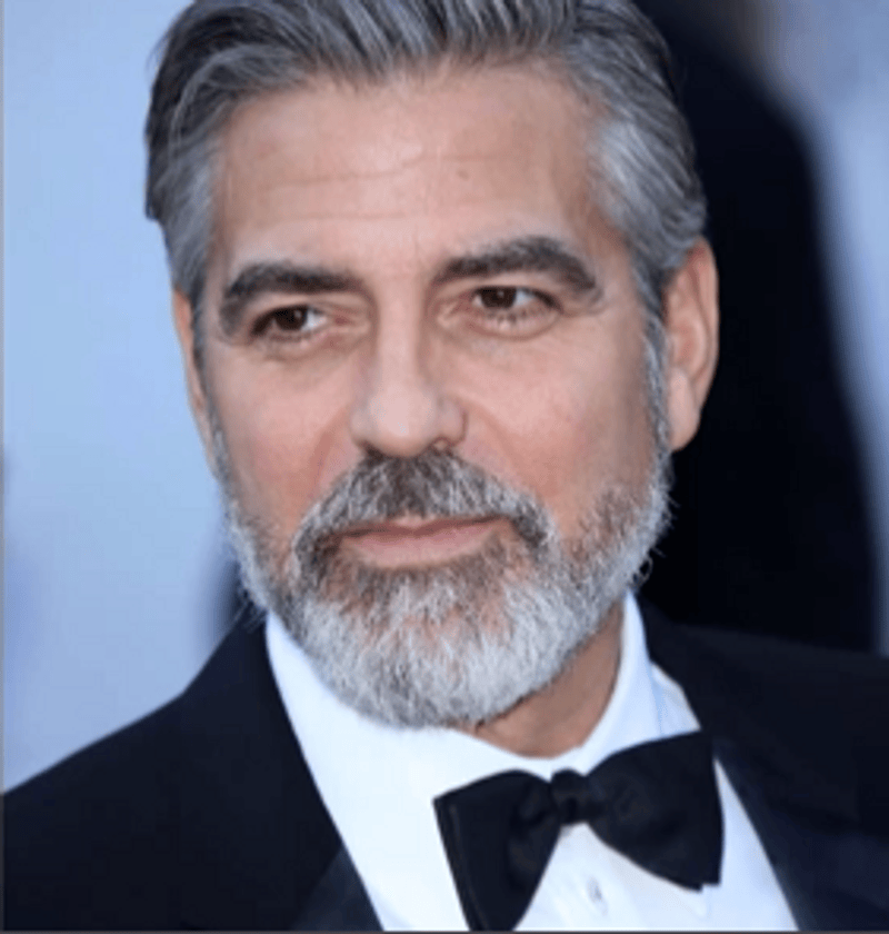 первого мужчину я не знаю, а если сравнить фотки Клуни разного возраста то видно, что овал лица поплыл, что совершенно нормально и закономерно в его возрасте, поэтому он завел бороду. Наверное его жена не против:)
