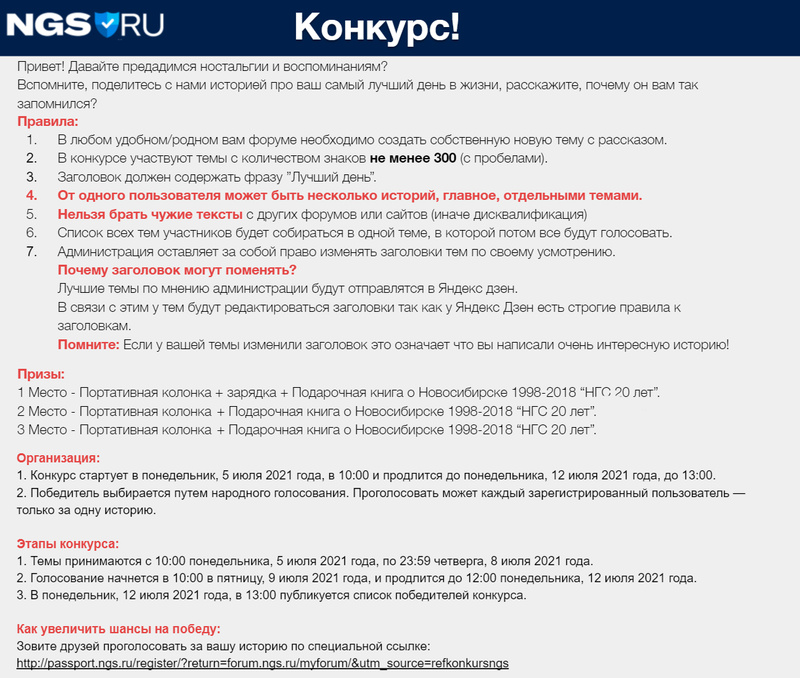 С 5 по 10 июля на нашем форуме проводится Конкурс на самый интересный рассказ о Вашем лучшем дне.
