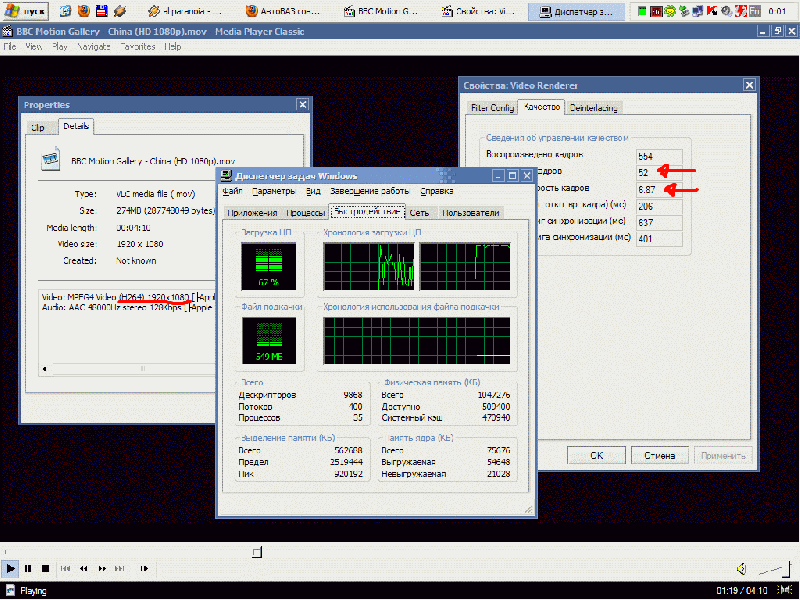 1080p, H264 с поток порядка 10 Мбит - 100%, 15 кадров/сек, куча пропущенных кадров.неправда.
