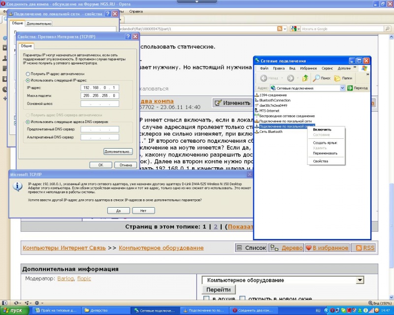 Ответ на сообщение Re: Соединить два компа пользователя bvs_