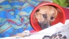 Сейчас вот первый раз сходили погулять. С лестницы на руках снесли и обратно также, обошли кружочек вокруг дома, пописала и устала. Быдловатая молодежь потешалась - у собачки ведро на голове, как смешно! (Джули, мы таки ведро оставили. Без него она пытается порвать комбез, а зубы у нее того, острые). Но нам на них было пофигу. Пришли с прогулки, и она впервые попила маленько куриный бульончик