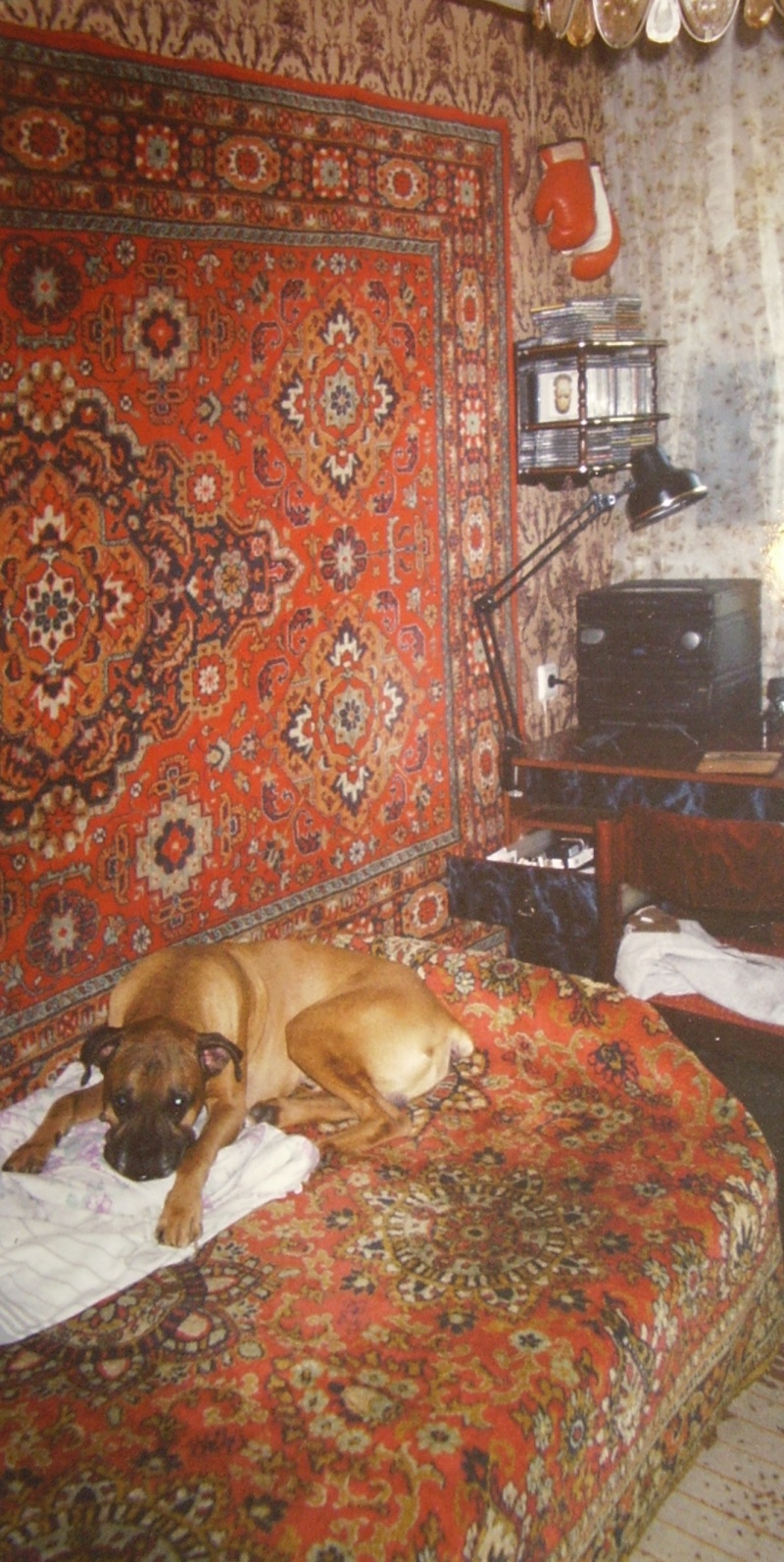 Вот, сфотал фотку, потом оцифрую плёнки, будет лучше видно. Не купировал уши специально. Догу купировали дома, долго, первые дозы анастезии не помогли и т.д. После этого решил боксёру не купировать вообще. В окрасе ни одного белого пятна!