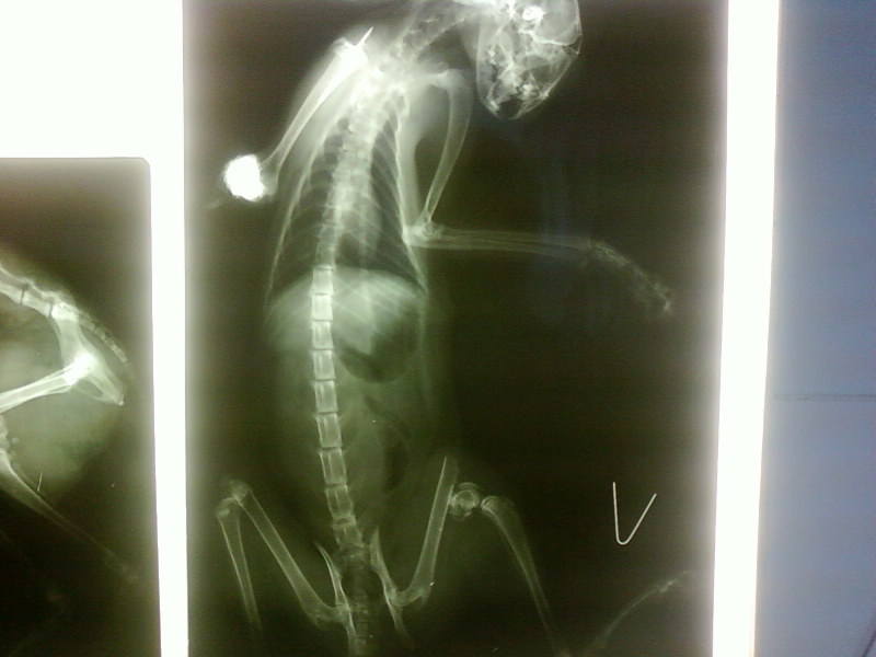 2 дня назад по великой случайности он выпал из окна с 8 этажа, в тот же час мы поехали в клинику, сперва в Энималз, но там мы так очереди не дождались и поехали на Фрунзе 57/1, забыл название. Там нам сделали снимки и сказали нужна операция. Посоветовавший по телефону с одни врачем, он сказал можно и не делать, попробовать в клинике сделать, ну что-то типо гипсовой накладки или как там, в общем я не понял. Пока он дома, лежит под уколами, отходит от шока, я бы хотел с вами посоветоваться, посмотрите пожалуйста фото, прокомментируйте. У него сотрясение и что-то с мочевым пузырем ( ушиб) , врачи так и не сказали. Вывих передней лапки, его на снимке видно и сломана задняя.