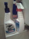 Еще в Ленте есть средство от запаха - зелененький пульверизатор, в отделе для животных. Он 2 в 1 - дезинфекция и устранение запаха. Стоит 79-159 руб. Сложных задач я ему не ставила, просто лоток при замене наполнителя им мою, под лотком, контейнеры-переноски...Такой?