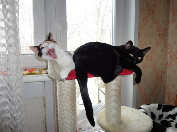 Маня, правда, подросла. Вся шебутная, везде надо залезть, все схватить. А Бася спокойная, интеллигентная такая, временами медитативная кошка. Но когда Машка решит поиграть - Бася без вариантов летает с ней по квартире, только ветер в ушах.