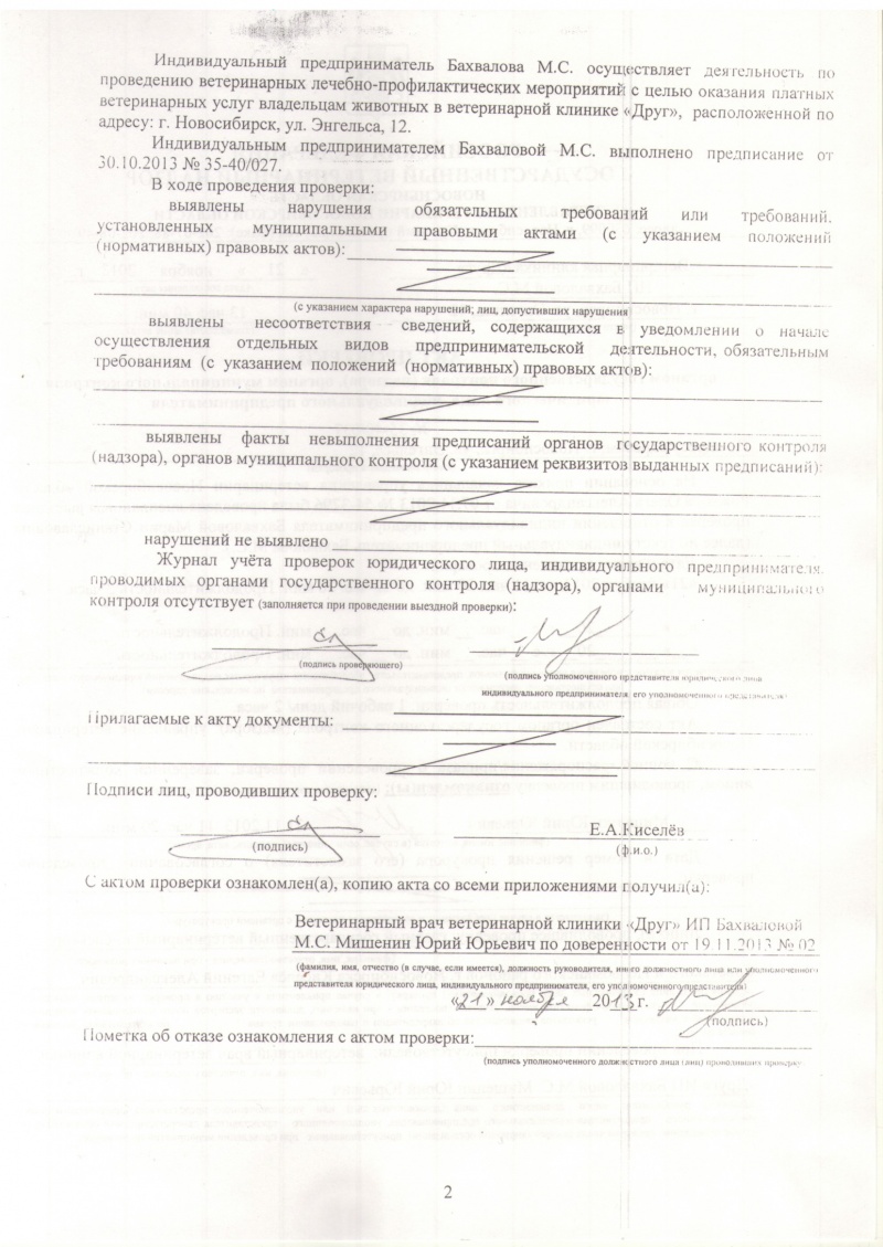 По результатам проведенной проверки Вет.клиника "Друг" (ИП Бахвалова М.С.) оштрафована за нарушение правил карантина животных или других ветеринарно-санитарных правил! А так же готовятся документы на привлечение к административной ответственности по факту нарушения законодательства в сфере обращения лекарственных средств для ветеринарного применения П.6. Если уж выкладываете такие серьезные обвинения в адрес клиники на всеобщее обозрение - выкладывайте и доказательства.