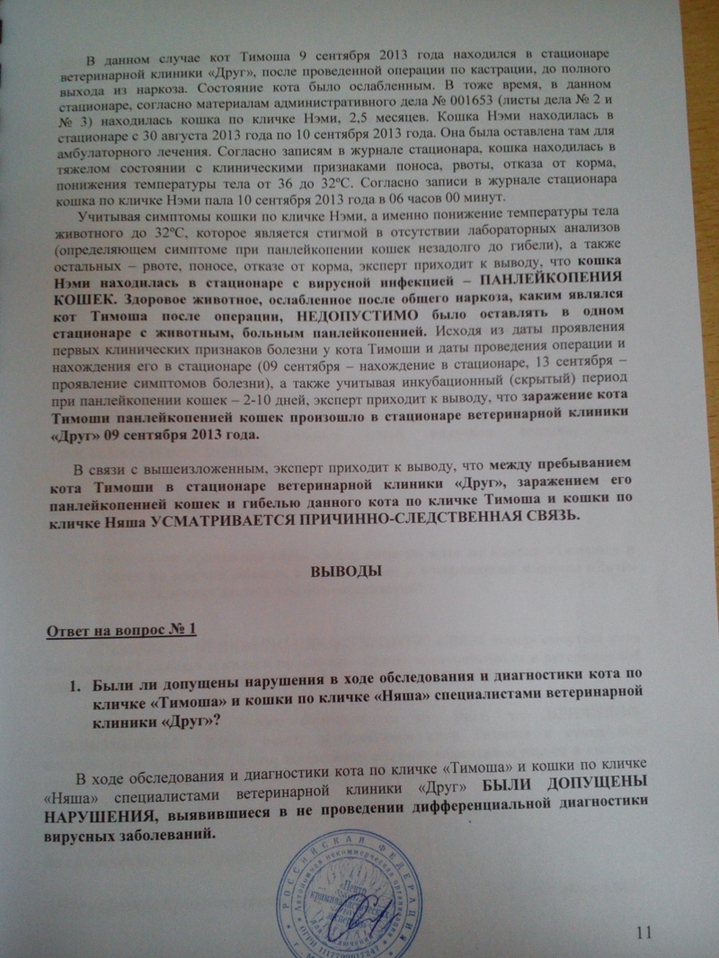 - Во время нахождения кота в стационаре 09.09.13г. в стационаре находилась кошка по кличке "Нэми" с теми же самыми клиническими признаками, что и у моих котов. Диагноз ей не установили за 10 дней (акт проверки управления Ветеринарии по НСО ниже)! А мои животные точно заразились где угодно но только не в данной ветеринарной клиники... ну точно