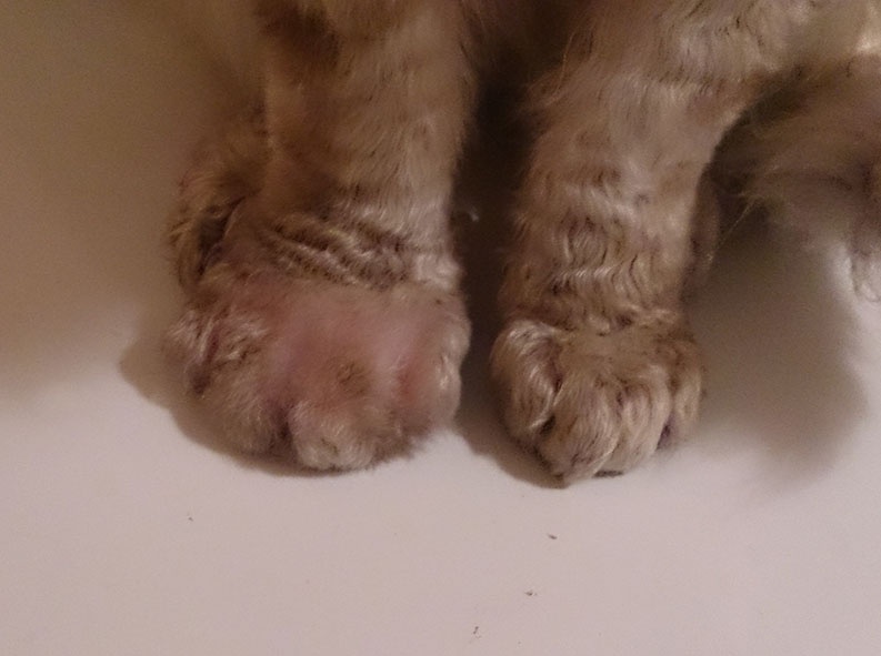 Проявилось это впервые в полугодовалом возрасте. Врачи сказали исключить аллерген. Кот на натуралке, так что по очереди исключали разные виды белка (точнее, оставляли один вид белка и наблюдали). Какой-либо взаимосвязи с пищей не заметили: в моменты обострения кот не ел ничего "этакого": только привычная еда. Я подозреваю атопический дерматит или какие-нибудь аутоиммунные бяки. В пользу первого говорит следующий случай. Однажды я приехала из командировки с чемоданом. Кот обнюхал его и буквально в тот же день "опух" - на улицах тогда было пыльно.