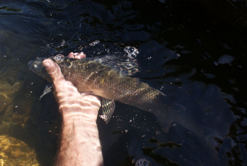 Но почему-то на мух у меня мельче экземпляры цеплялись. Зато в одном месте только на сбирулинку ловился черныш , в то время ,как блесна была в игноре.Фокус...шустрый, оптимистичный Фокус ;-)))