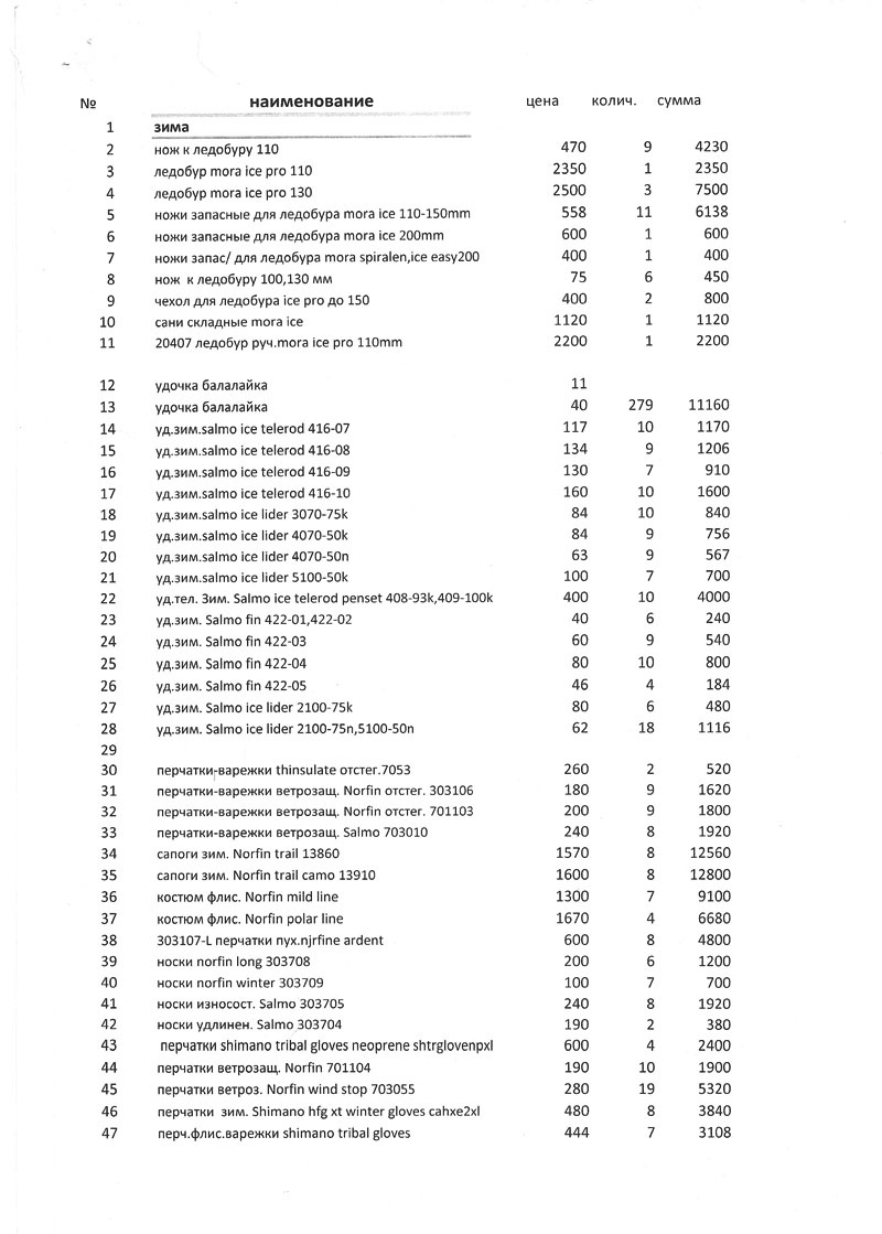 есть возможность в счет некоторых долгов забрать товар - есть ледобуры, одежда-обувь, зимние удочки, немного палок, ножи златоуст, всяка мелочь