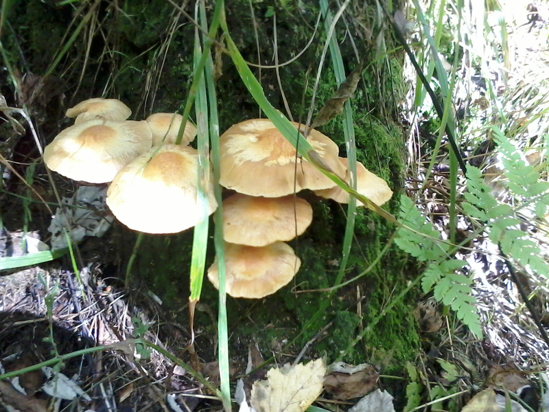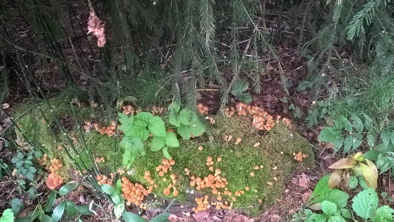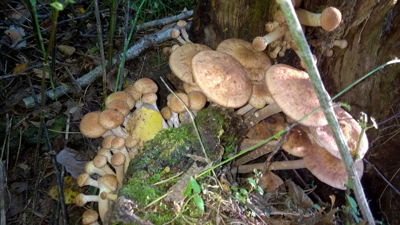 Утро, 6.54 электричка до ст. Тогучин, шарился в районе Плотниково - результат !!! 1 опёнок осенний + туча ложноопят сернопластинчатых, чашуйчатка и прочих неизвестных грибов, произрастающих на пнях.