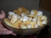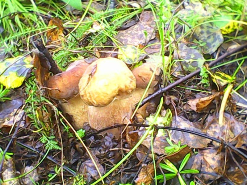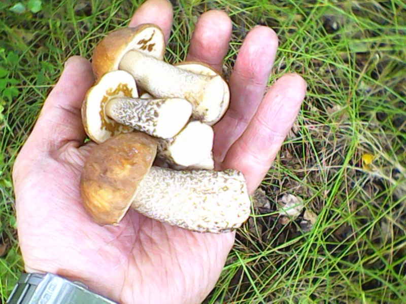 В конце второго заросшего леса,на прогалах,начали попадатся белые,чему я был немало удивлен,причем грибы были все молодые,шляпки 5-7 см.,почти все чистые,не дойдя до своих точек накосил треть ведра..далее поперли мелко-средние подберезовики,от мизинца до длани в длину,90% чистые,я уж подумал что так и до точек не дойду,если дальше так пойдет(ведро поменьше уже было почти полное)