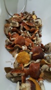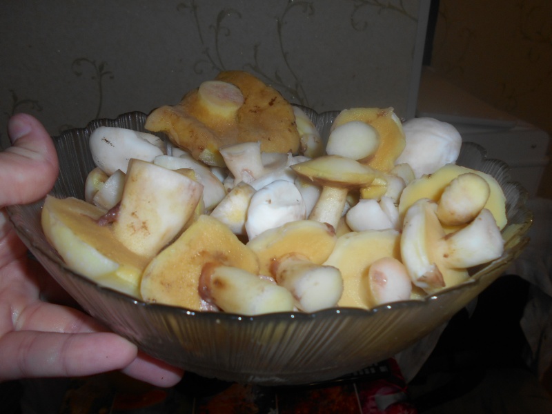 В груздевом осиновом околке было найдено всего 7 груздей,среднего размера(где обычно набиралось 30+)все по 1-3 шт,и далеко друг от друга,далее описывать подробно не буду,все проходило в том же духе,в рабочих околках 70% подберезовик и 30% белый,все молодые,в основном по опушкам,подберезовик 90% чистый,белый 50% чистый,попадались одинокие сухие грузди,большие,некоторые чистые,встретил в одном из околков огромную старую березу,облепленую опятами с одной стороны,но все очень мелкие,не стал брать..