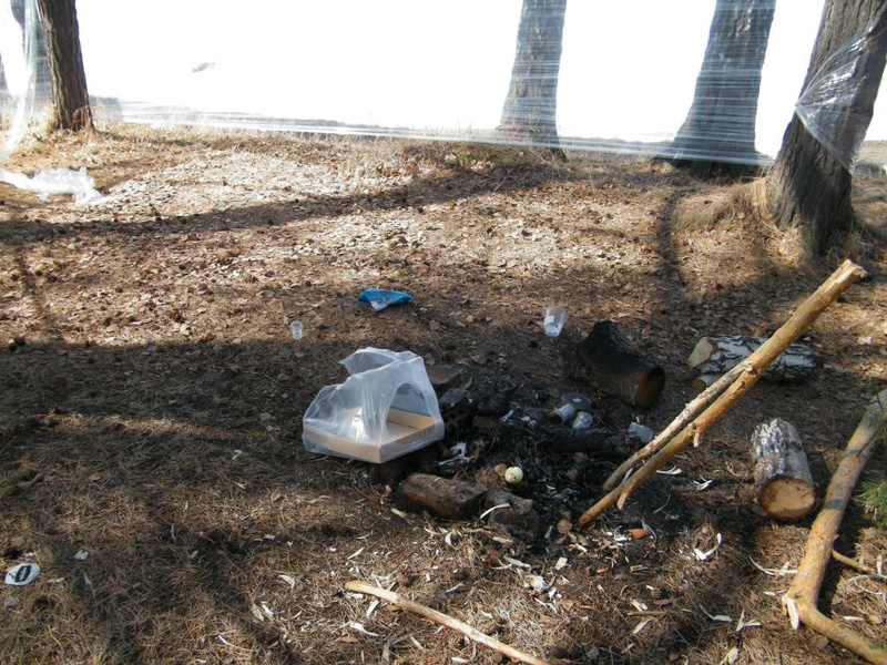 Еду я прошлой субботой (8 апреля) в Белоярку. За Дубровино, на "Старой пилораме" под соснами стит машинка, костерок дымит, три сосны обтянули целофаном что бы не дуло. " Но - думаю с одобрением - не терпится мужичкам на чистой воде окушков на уху поймать. "Но каково же было моё разачерование, когда возвращаясь вчера из Белоярки, я съехал с дороги на это самое место, что бы посмотреть подход к берегу. То были не рыбаки, а городские засранцы. Впредь буду обязательно фотографировать номера машин и выкладывать в интернет, что бы страна знала своих засранцев!