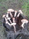 В кипящие опята - специи (черный перец горошек, гвоздика, душистый перец, чуток корицы), минут 20 кипит, потом добавляю букет из укроп-вишня-хрен-смородина, чуток чеснока проварить тоже кидаю. Букет потом выкидываю. Сахар, соль по вкусу.