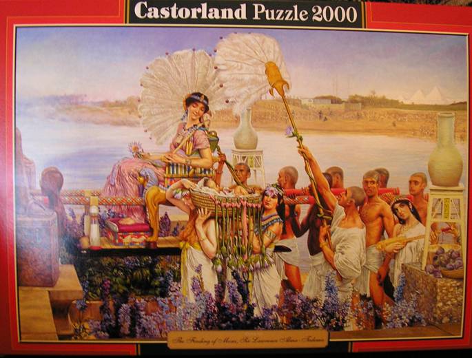 • Недавно приобретенный "Моисей в тростниках", по картине сэра Лоуренса Альма-Тодема, 2000 элементов. Шикарная штука, получили огромное уджовольствие от сборки. Жалко было разрушать красоту и складывать в коробку!:улыб: