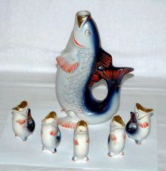 Может есть у кого не нужный "советский" набор для вина "Рыбки" синенького цветаприкрепляю картинку-как он выглядит