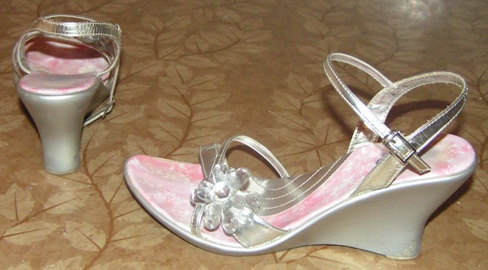2) босоножки на танкетке серебристые (стелька розовая), удобные, 39р-р
