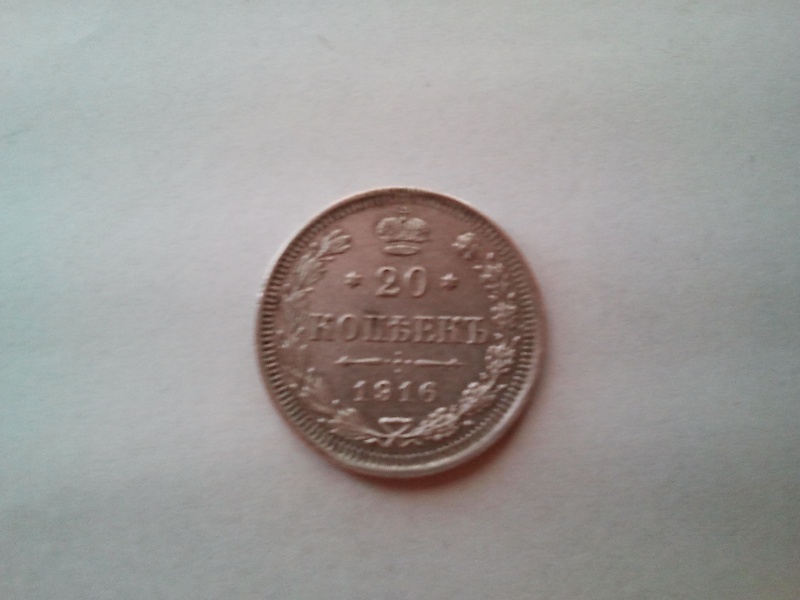 Есть одна монета 20 копеек 1916 года (Николай II). Подскажите сколько будет стоить?Если вторая сторона такая же как и показанная, то рублей 100-200 потянет (это не ставка). Для оценки нужно обе стороны видеть. А еще и гурт не помешает... Приложите, если не сложно, фото второй стороны.