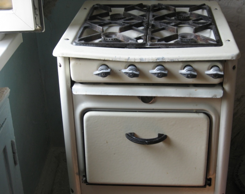 1. Газовая печь, в рабочем состоянии (регулярно проверяемая на безопастность газовой службой), правда духовка поему не очень рабочая.
