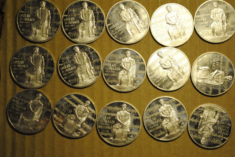 Любителям казахской юбилейки предлагается свежая монета. 50 тенге 2013 года (1 марта запущена в обращение), посвященные Мукану Тулебаеву. Медно-никелевый сплав, монеты мешкового качества. 18 марта прибыли из Казахстана.