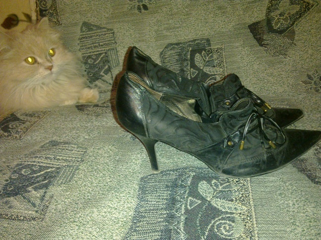 5. Туфли черные с узорами на весну-осень, на сухую погоду, р-р 40-41, ношеные, носки оббиты, но их можно черной краской закрасить. (Кот случайно попал в кадр, не отдается )