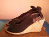 Чёрные тканевые босоножки на плетёной платформе, надевала 1-2 раза, оказались маломерками, хотя маркированы 37-м размером.